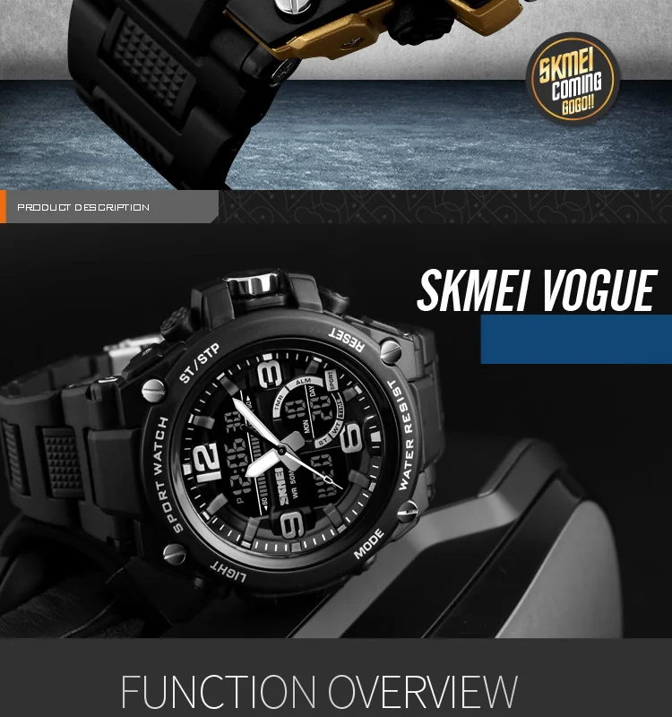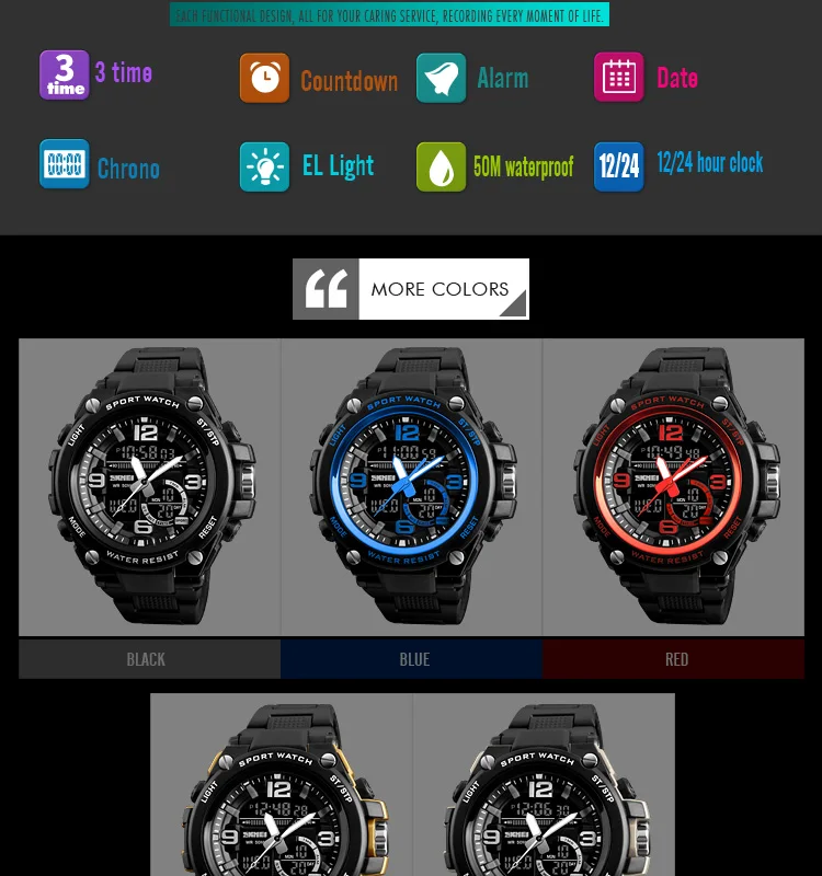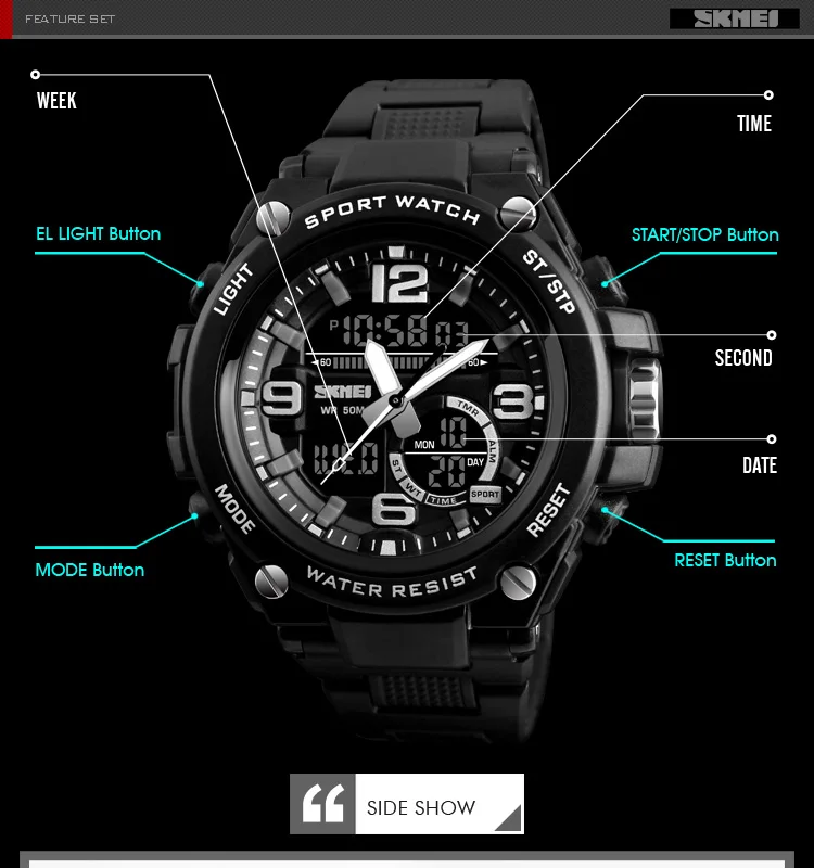 Feature:Water Resistant,Stop Watch,Back Light,Multiple Time Zone,Alarm