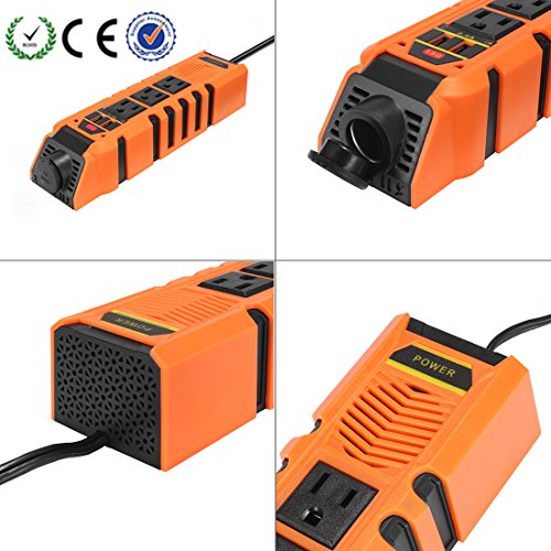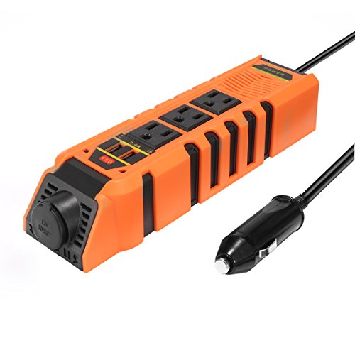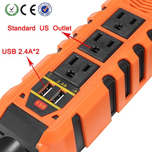 uxcell 150W Car Power Inverter DC 12V to 110V AC Inverter w 2.4A Dual USB Car Charger Charging Ports Orange