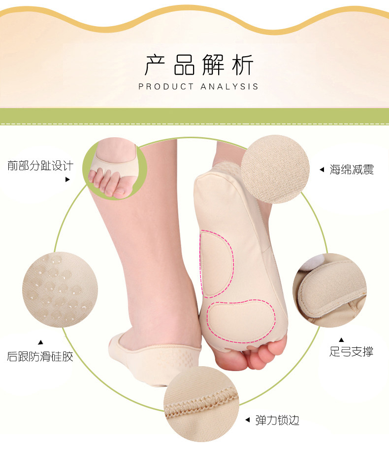 迈高乐纯棉足弓支撑舒适前掌垫五趾分离袜隐形船袜浅口防滑夏