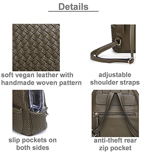 -. Feature : High quality faux leather / handmade woven pattern / Roomy backpack for ipad and other daily essentials / adjustable shoulder straps / rear zip pocket