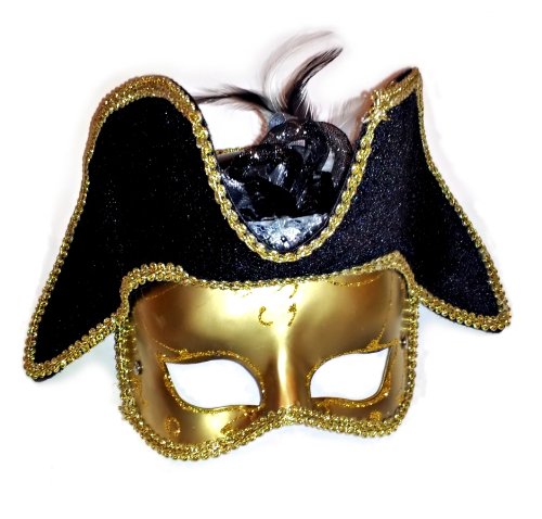 -. Title : Venetian Masquerade Pirate Anonymous Half Mask w Hat - Gold or Silver Adult OS