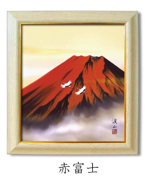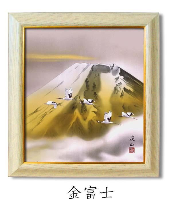 赤富士には開運力があり、金運を高めるとされるよりよい縁起物です。旭日の黎明を浴びて金色に輝く金富士の姿は、赤富士以上にめったに見られないことから、運良く見ることが出来た者には限りない吉事が訪れるといわれています。特に金運財運を高めると崇められ、富士信仰とあいまって、人々の憧れの象徴としてもてはやされてきました。お手持ちの色紙等と入れ替えが出来ます。 |
