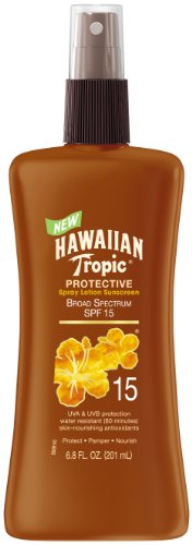 -. Title : Hawaiian Tropic Sunscreen Protective Tanning Broad Spectrum Sun Care Sunscreen Spray Lotion - SPF 15, 6.8 Ounce