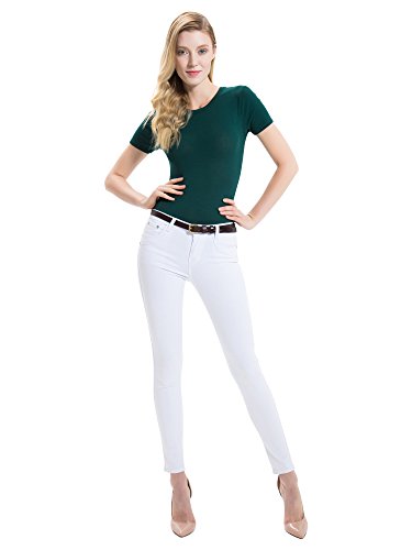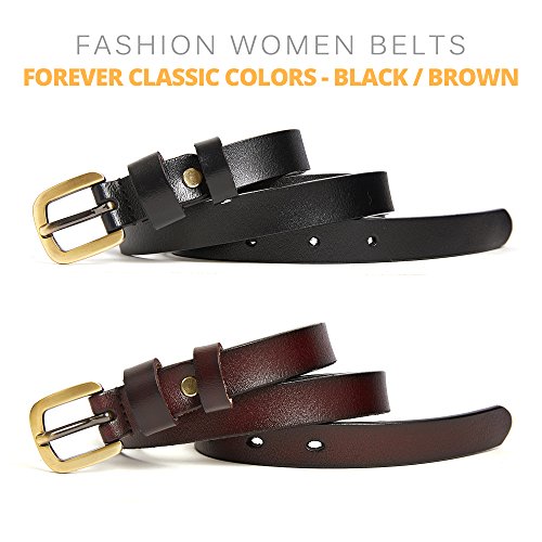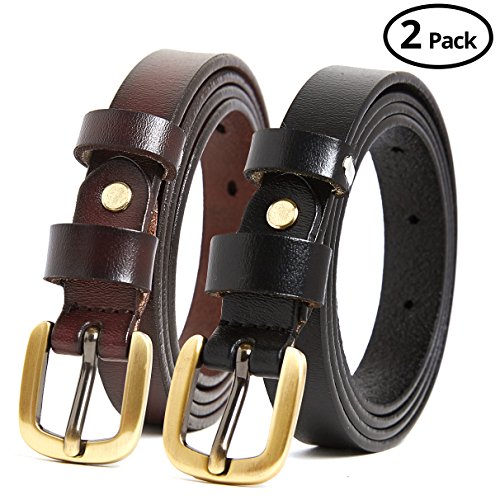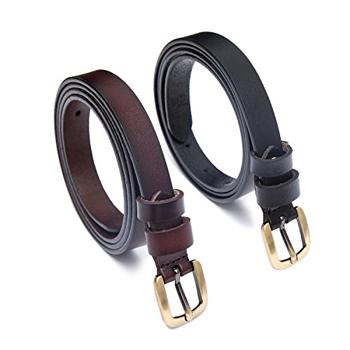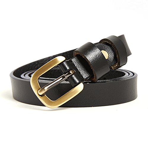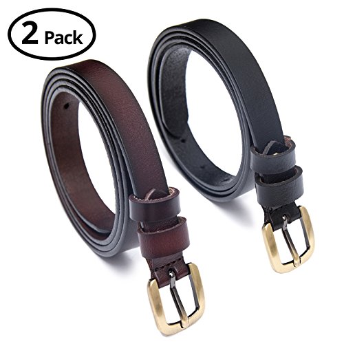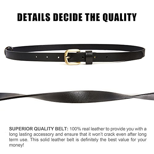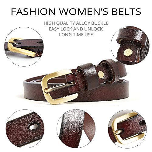 2 Pics: HBY Women's Leather Casual Belt Metal Fashion Skinny Belt Solid Color