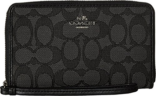 Signature fabric. Six credit card pockets. Full-length bill compartments. Zip closure. Wrist strap attached. Imported.