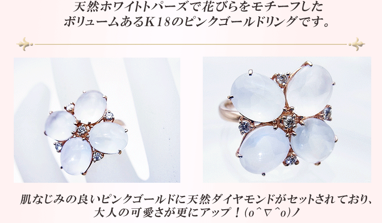 商品説明 ホワイトトパーズで花びらをモチーフにしたボリュームあるリングです。
