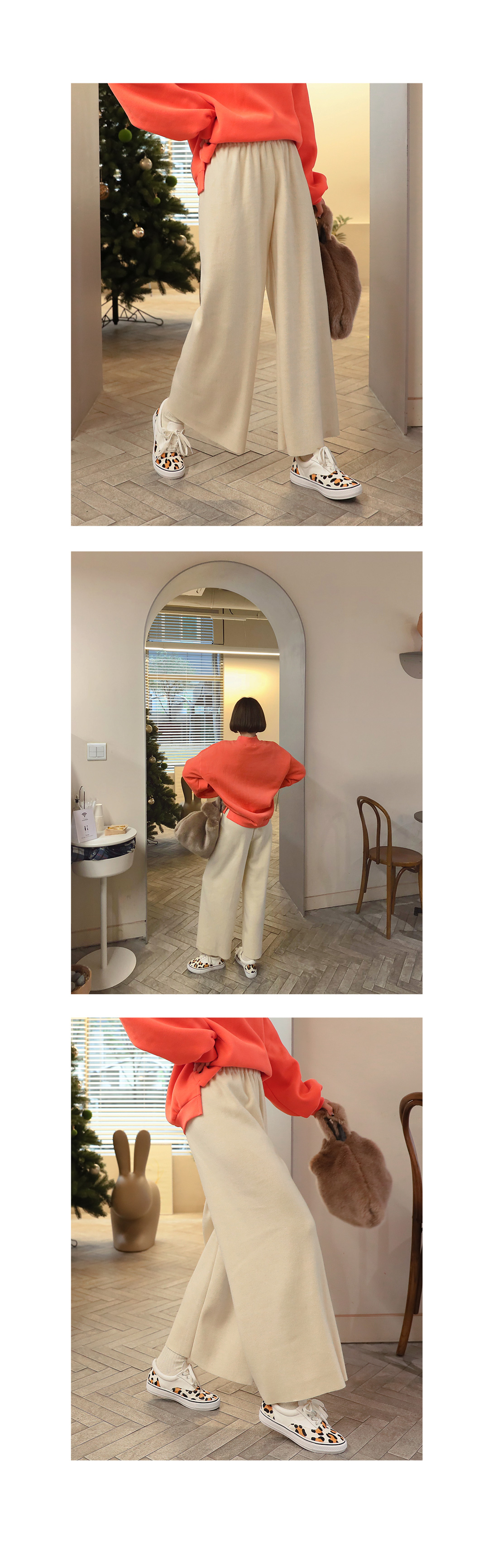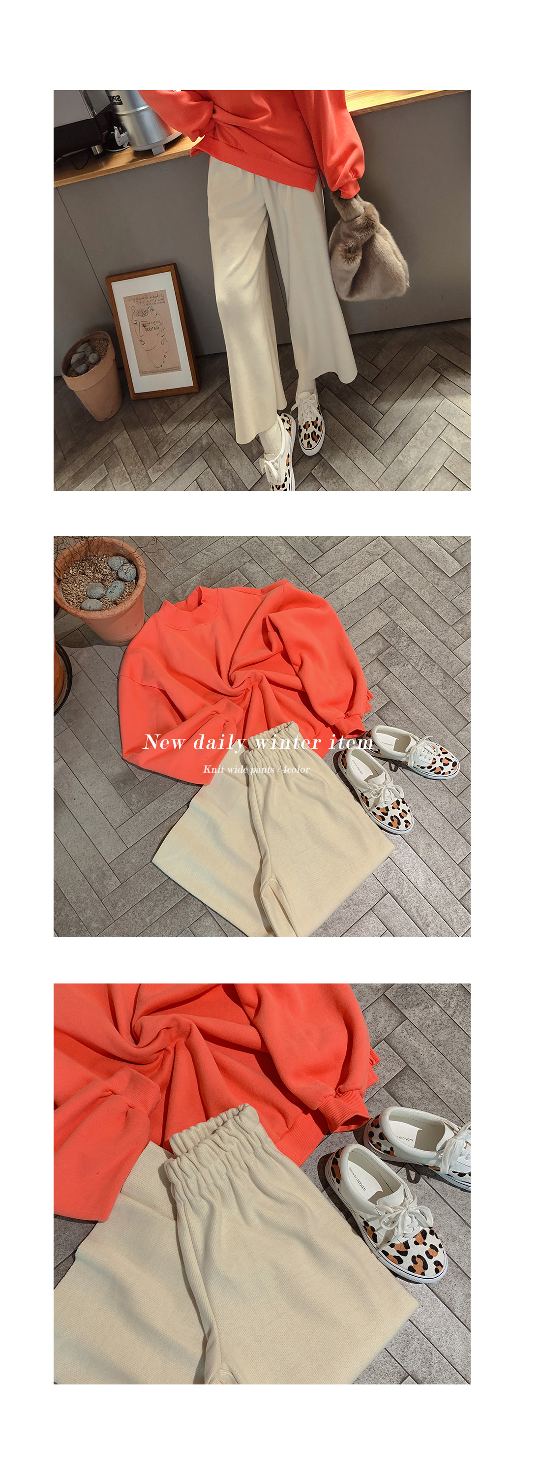 MD COMMENT 네츄럴한 무드가 느껴지는 와이드 밴딩 팬츠를 소개해드릴게요-모델기준 9부기장으로 발목이살짝 드러나 더욱 슬림해보이는 효과가 있구요.전체허리밴딩으로 사이즈에 구애받지 않으면서편안한 착용감을 느끼실 수 있어요.네츄럴하게 떨어지는 라인으로 와이드한 핏이 체형커버 효과를 두와주면서도톰한 니트 원단으로 보온성과 함께신축성이 활동하는데 편리함을 준답니다!편안하게 입기 좋은 디자인으로 맨투맨이나 니트등- 다양한 상의와 두루두루입기 좋으며앵글부츠와 함께 코디하면 또 다른 느낌을 느끼실 수 있어요-!COLOR/SIZE 베이지,브라운,그레이,블랙FREEMODEL FITTING 베이지/FREE