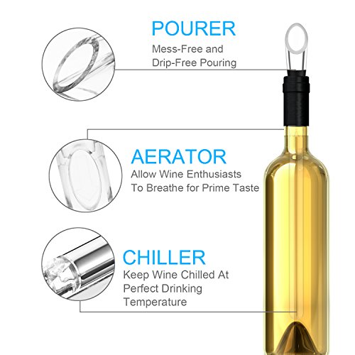 Studio : ZPTONE Publisher : ZPTONE Binding : Kitchen Product Description Description: ZPTONE 3-in-1 Wine Chiller with aerator and pourer will keep your pre-cooled wine at perfect drinking temperature and refresh red wine to ideal cellar temperature. Makes a great gift for the wine enthusiast. Perfect for Wine Lovers Sleek Stainless steel chiller tube to enable optimal drinking temperature for up to 30 minutes Built in wine aerator allows one to breath the wine by releasing its aromas flavors Unique mouthful pourer for wine dripping taste preservation Easy to Use and Clean Simply place the stick in the freezer for 2-3 hours and then put the wine chiller stick in wine bottle for 10-15 minutes. Hassle free maintenance; Be sure to wash the wine chiller by hand only. Perfect for All Occasions A MUST HAVE wine accessory for parties, special unique birthday gifts, celebrations and festive seasons; Ideal to bring it along for short traveling, camping and outdoor picnicking; Great gift item for friends, families and your loved ones. Usage Tips: 1. Place the chiller rod in the freezer for minimum of 2 hours 2. Open your wine and let it aerate for 10-15 minutes 3. When ready to serve, pour off some wine to allow the chiller to be inserted into the bottle 4. Then just insert the wine chiller into the bottle and slowly pour about a glass of wine and start enjoying the aroma. 5. Clean: Hand wash with clean water. 6.Re-Use: After cleaning, keep the chiller in the freezer so it's ready to go for the next in need. Package List: 1* Wine Chiller Rod 1* Wine Pourer with built in Aerator 0