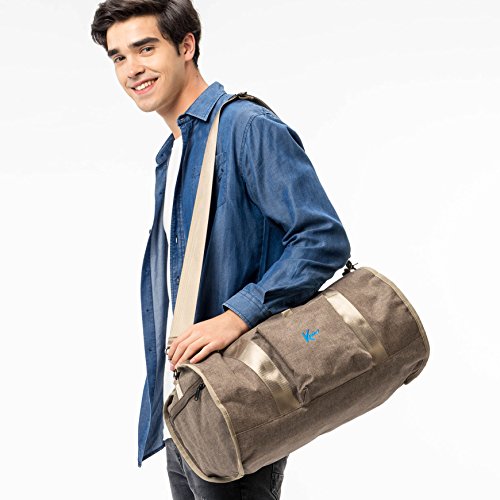 -. Feature : MAIN MATERIAL: The KEN Mens duffel bag is made of high quality cotton and linen,water-resistant and lightweight. / FEATURE:Joining hook-and-loop top handles and removable/adjustable cross-body strap with padded shoulder / STRUCTURE:The canvas sling have four pockets.One front zipper Pocket can put your charging,phone,keys,cards and so on.Another main zipper Pocket is lightweight and enough to carry a pair of shoes, bottle, an umbrella, a few books, lunch or clothing.Each side has a side pocket. / STYLE:It's perfect for gym, sport, yoga, dance, travel, carry-on, lage, camping, hiking, team work, training and more! It's also a fabulous gift idea for everyone. / WARRANTY: All of our kEN bags have 1-YEAR WARRANTY. Please contact us if you any quality problems with your bag.(The picture and description of the product are for reference only. Please understand the deviation)