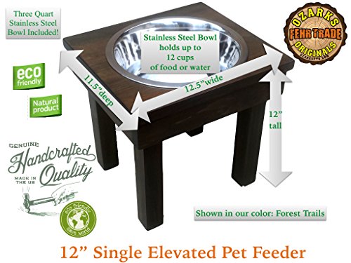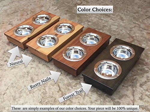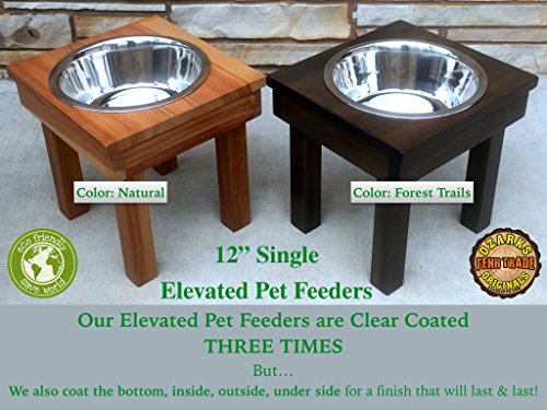 -. Feature : Natural & Safe, even if your pet eats the finish- Our stains & finishes are natural ingredients. / Allergen Free! Gluten Free! Non-toxic, Kid & Pet Friendly / 12" Tall- 12.5 L x 11.5 W- Also comes in 4" or Doubles in 4 sizes- 3.25", 7", 12" & 17" tall / Gorgeous Color Choices- Natural wood colors resembling cedar or walnut or deep espresso tones / We use a 7 step process to assure a durable finish, our feeders are made for use- easy clean up with a damp cloth