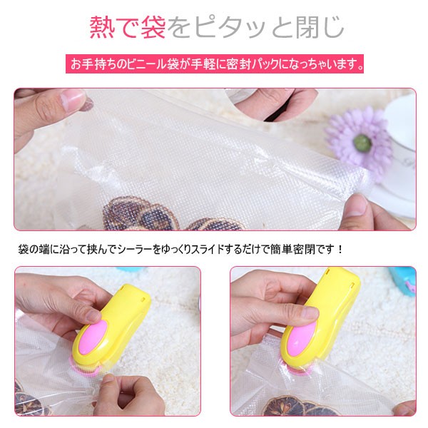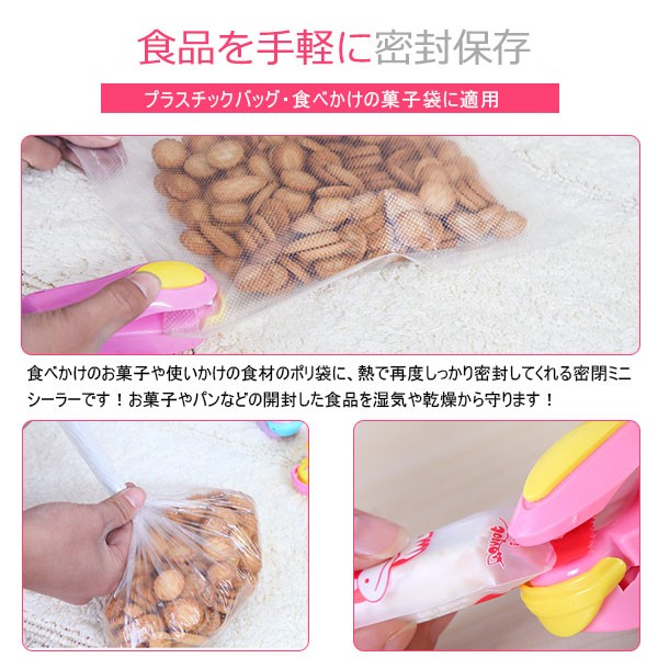 食べかけのお菓子や使いかけの食材のポリ袋に、熱で再度しっかり密封してくれる密閉ミニシーラーです!