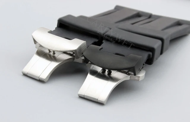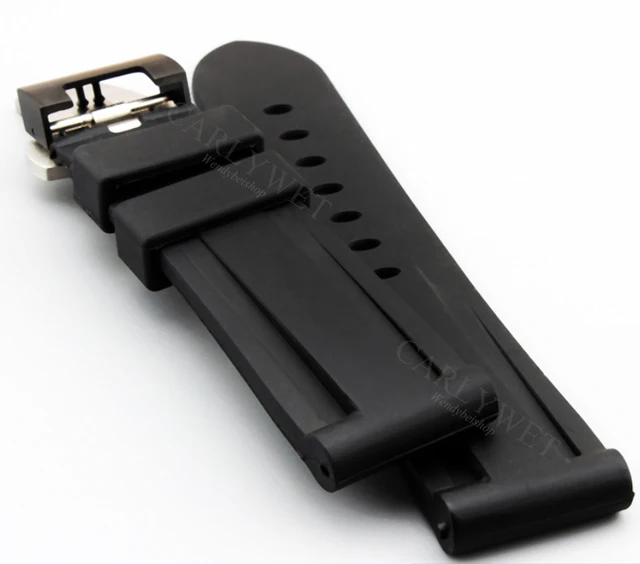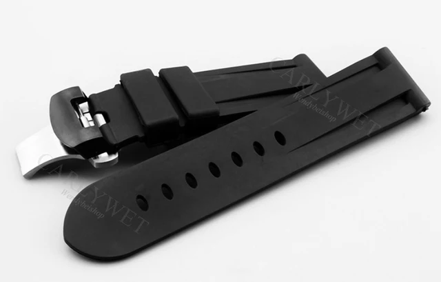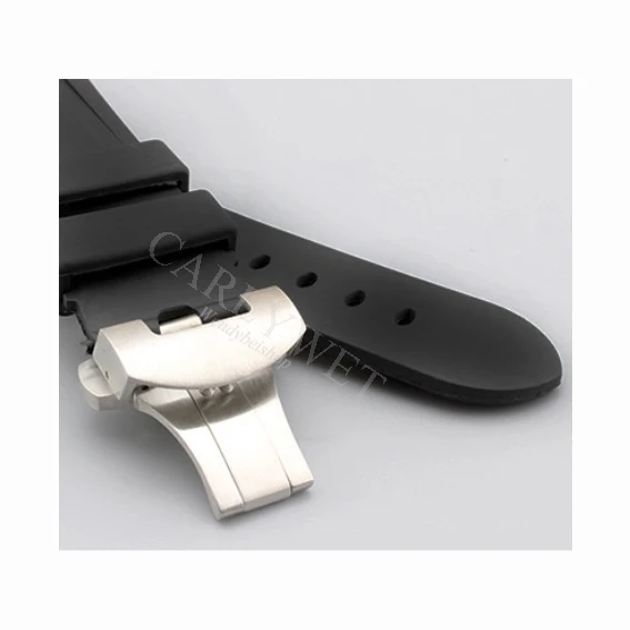 | [해외] CARLYWET 24 미리메터 도매 블랙 방수 실리콘 고무 교체 손목 시계 밴드 스트랩 클래식 실버 블랙 버클 |