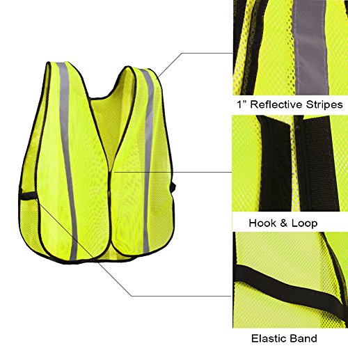 HIGH VISIBILITY AND REFLECTIVITY: Fluorescent Yellow Safety Vest with 1" width Vertical Reflective Strips on both Front and Back.