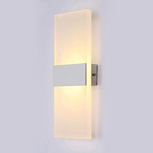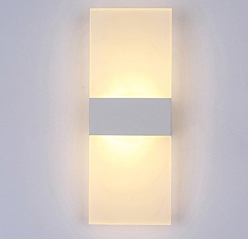 Alotm 8.7"x4.3" 6W Modern Acrylic LED Wall Sconces Aluminum Lights Fixture Decorative Lamps Night Light for Pathway, Staircase, Bedroom, Balcony, Drive Way, Living Room Warm White (White)