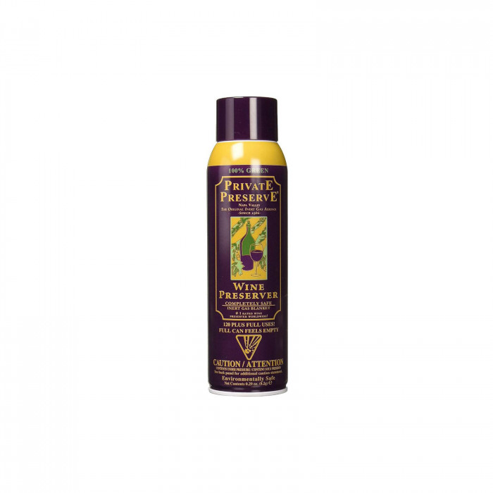 | プライベート・プリザーブは飲み残したワインの表面にガス層をつくり、酸素が液体表面に触れることを防ぎ、ワインの風味や香りを保ちます。世界中のワイナリーで使用されている不活性ガス(無味無臭)の為、新品でも重さは感じられません。750mlボトルで約90回(噴射回数約450回)ご使用頂けます。噴射音がしなくなったら空です。 |