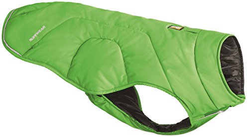 -. Binding : Misc. -. Brand : Ruffwear -. Feature : SEE IMAGES FOR SIZING CHART / Recycled polyester shell and synthetic insulation offer warmth in the coldest conditions / Jacket packs into an integrated stuff sack / Side release buckles for easy on and off / Low-light visibility with reflective trim and light loop for attaching The Beacon safety light -. Label : RUFFWEAR -. Manufacturer : RUFFWEAR -. PackageQuantity : 1 -. ProductGroup : Pet Products -. ProductTypeName : PET_SUPPLIES -. Publisher : RUFFWEAR -. Studio : RUFFWEAR -. Title : RUFFWEAR QUINZEE GREEN INSULATED DOG JACKET EASY ON / OFF ALL SIZES