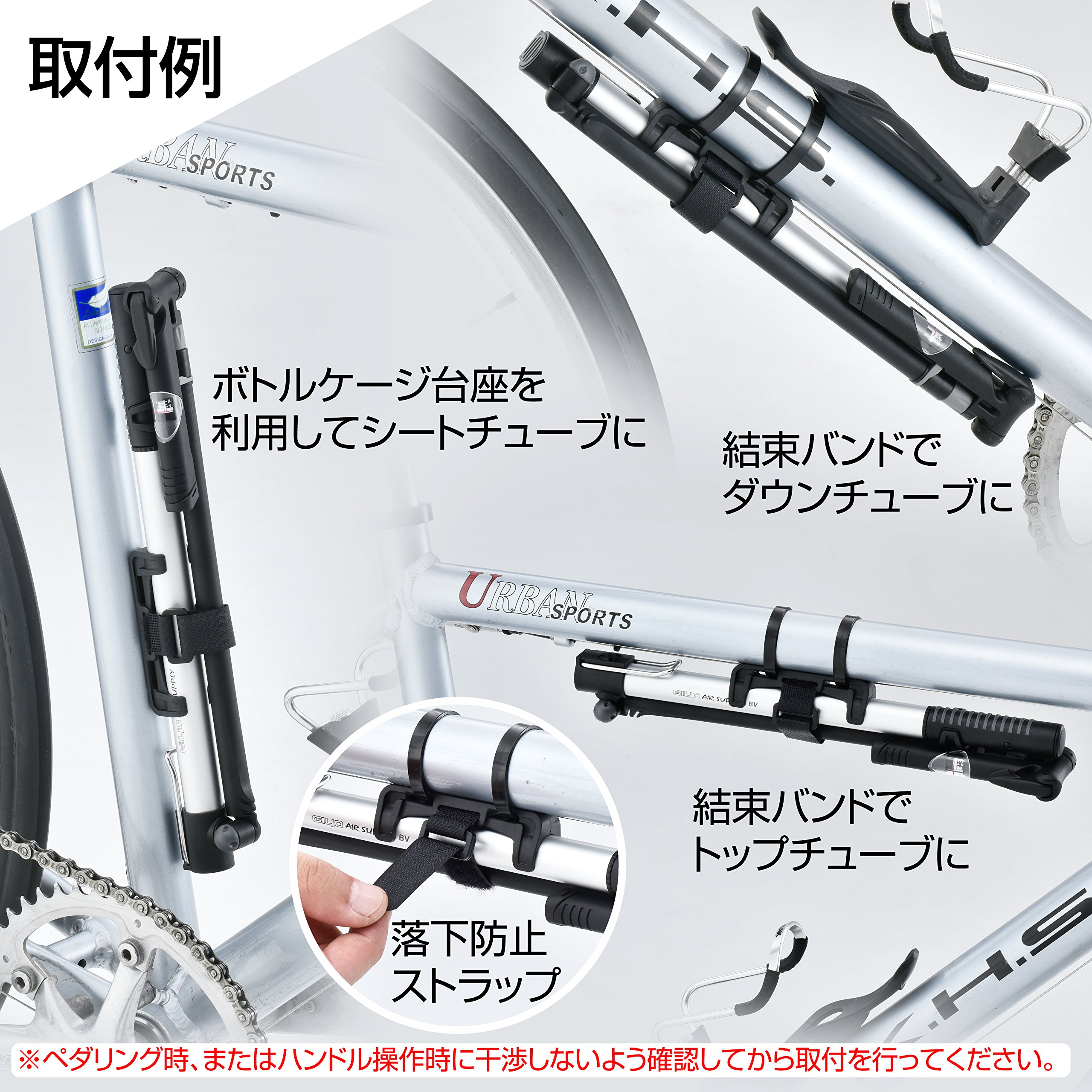 Weight 200 g Corresponding valve Buddha style American style English style Maximum air pressure 140 psi (9.6 bar) Accessories Fixed belt × 2 Frame mounting bracket British type clip included