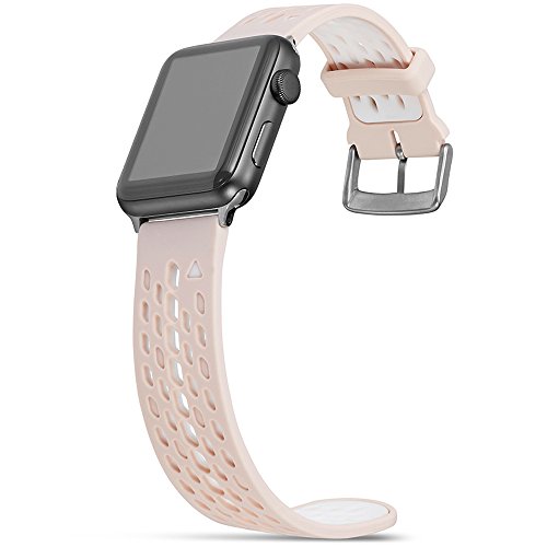 Material:High quality material is applied on every part of this pretty product. The band is made from high performance silicone, soft, flexible and friendly to skin,The silicon strap has Lugs on both sides, locking onto Apple watch precisely and securely. It is easy to install / remove