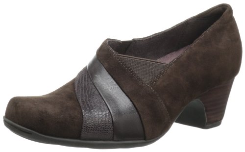 Professional on the outside; cushioned on the inside. This high-vamp women's shoe is finished with attractive seaming details and a chunky heel. A removable OrthoLite footbed with Active Air adds all-day comfort. Chic and versatile in supple dark brown suede/leather, it's sure to be your go-to shoe this season.Feature