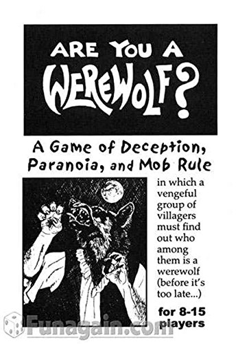 -. Feature : 7 to 16 players / 20 to 60 minutes playtime / The new packaging for Are You a Werewolf? comes with 20 cards: 12 Villagers, 3 Werewolves, 1 Seer, 1 Moderator card / Also comew with 3 Blank cards for custom roles Fits into a standard Fluxx display / great fun for 7 to 16 players