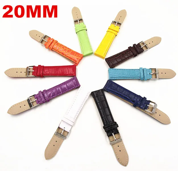 도매 50 개/몫 20 미리메터 PU 가죽 모조 대나무 곡물 가죽 시계 밴드 시계 스트랩 10 색상 가능 031405