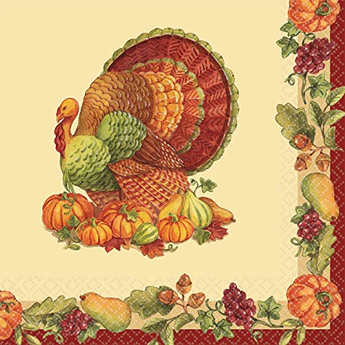 Product Description Be party ready, clean up gravy spills and pumpkin Pie crumbs with our joyful Thanksgiving beverage napkins! these small paper napkins are printed with a Thanksgiving turkey and a border of painted fruit, leaves, and pumpkins. 0
