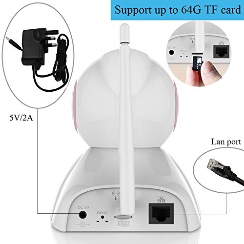 -. Feature : ☆ PTZ HD camera:720P 1MP HD IP camera,better quality for pictures and videos,further vision.Everything seems so real for you.pan:270°,tilt:80°,slide video with fingers to adjust camera's direction,view any angle as you want. / ☆ Two way audio:Built-in microphone and speaker,you can talk with your families or pets via smartphone wherever you are. / ☆ Night vision:24 hours real-time surveillance.15 meters night vision distance.You can see video clear even in the dark night. / ☆ Motion detection alarm:the camera will detect anything moved,and record the video or shotscreen in SD card automatically.Also support alarm like sending Email,FTP. / ☆ TF card video storage:Support up to 64G TF card memory,easy to carry,fast data transmit,and large data storage.