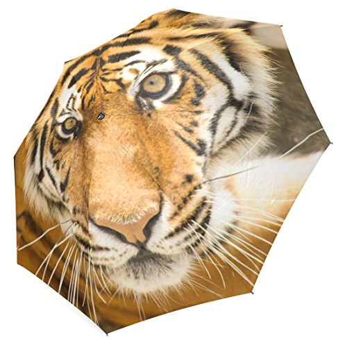 -. Brand : InterestPrint -. ClothingSize : Medium -. Color : Multicoloured -. Department : unisex-adult -. EAN : 0614253173277 -. Feature : Made from 100% polyester pongee waterproof fabric. / Using heat sublimation technique to prevent discoloring, long-lasting effects. / 8 ribs made from strong fiber for extra support. / Each rib sized in 21.7 inch and consists of 3- section aluminium for flexibility and strength. / Gripped plastic handle for firm hold, sized in 25.6 inch. -. PackageQuantity : 1 -. ProductGroup : Apparel -. ProductTypeName : LAGE -. Size : Medium -. Title : InterestPrint Hipster Beautiful Clear Amur Tiger Face Foldable Travel Rain Umbrella -. UPC : 614253173277
