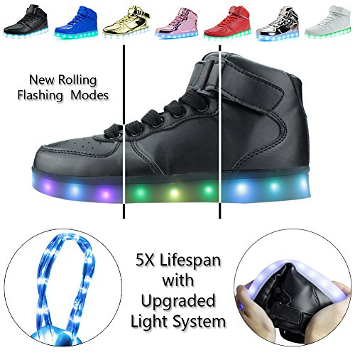 SPECIFICATIONS: Material: PU leather silica gel sole new LED light strip Light modes: 16 (brand new 8 rolling flashing modes 8 classic light modes) Package: One pair of Led shoes, one instruction and one USB charging cable. 0