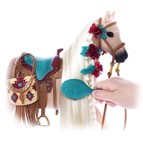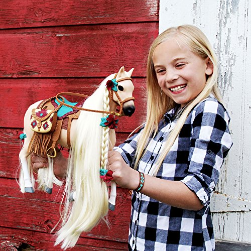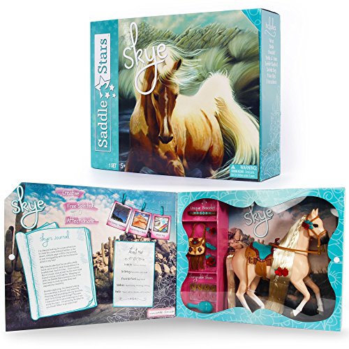 Meet Skye, a free-spirited palomino from Arizona with a creative flair. With long, playable hair and loads of accessories, Skye is the perfect friend for any horse lover! Each beautiful Saddle Stars horse comes with her own story, accessories and hours of play and friendship.Feature