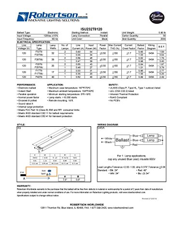 ROBERTSON 3P20116 eBallast, Instant Start, NPF, 1 or 2 Lamp F32T8, 120Vac, 60 Hz, Model ISU232T8120 BA (Replaces Robertson 3P20003, Model ISU232T8120 /B)