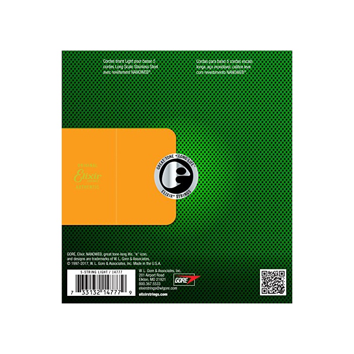 원본상품명: Elixir エリクサ ベス弦 NANOWEB ステンレス Long Scale 5弦 Light .045-.130 #14777 【正規品】