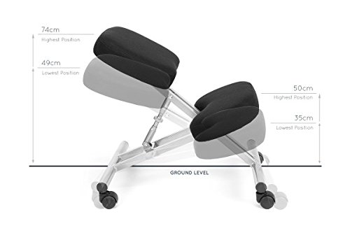 -. Feature : EXTRA PADDING: Khalz kneeling chairs have more padding than most other kneeling chairs on the market to allow you to sit more comfortably for longer. / COMFORTABLE: Extra padding makes it much easier on your knees, making it great for prolonged use. If you are under 6' 2" in height this chair should be perfect for you by helping your body sit correctly by reducing slouching and hunching when sitting at your desk. / ADJUSTABLE: Adjust the chair up or down to suit your height. Max height: 30" (75cm), Min Height 20.5" (52cm) / STRONG: Steel frame built to last much longer than wooden kneeling chairs. Maximum Weight: 240lbs / ERGONOMIC: Designed to promote correct posture when sitting at your desk. the khalz kneeling chair has the optimal angle seat to significantly aid in posture improvement. IMPORTANT NOTE: If purchasing for health/pain relief, please first check with your health care provider to ensure this kneeling chair is right for your specific condition.