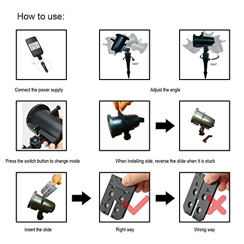 Waterproof Landscape Spotlight: Designed with IP65 function for you not worry about rain or snow day, it can be use in indoor and outdoor. 10-15 feet from the projection surface will be the best light show.