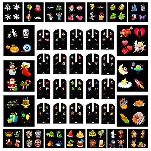 20 Pattern Lens: Made of heave duty plastic,durable and thick,slip easily into the projector. 20 colorful slides for you to celebrate and decorate any festival and occasion all year.