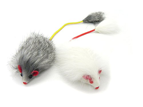 -. Binding : Misc. -. Brand : Kats'N Us -. Color : assorted -. EAN : 0702142779508 -. Feature : 100% Real Rabbit fur long hair - Nice Quality! / Red felt fabric ears, plastic eyes and nose, elastic cord tail. / Mouse body is about 2 inches long, elastic tail with puff is 3 inches long. / Natural white and Natural gray color, 1 of each. NO RATTLE / A real fur mouse and a fur pom pom in one! Your cat will think these are real! -. Label : Kats'N Us® -. Manufacturer : Kats'N Us® -. MPN : 702142779508 -. PackageQuantity : 1 -. PartNumber : 702142779508 -. ProductGroup : Pet Products -. ProductTypeName : PET_SUPPLIES -. Publisher : Kats'N Us® -. Size : 2 inches long -. Studio : Kats'N Us® -. Title : Real Rabbit Fur Long Hair Mouse with Elastic Tail Cat Toy - 2pk -. UPC : 702142779508