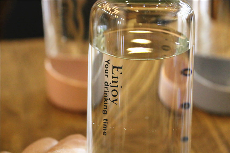 环保麦香时尚玻璃杯便携透明水杯学生刻度水瓶韩版创意个性随手杯