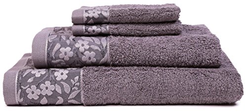 HYGGE Premium 100% Turkish Cotton Towel Set with Floral Jacquard; 1 Bath Towel (27" x 56"); 1 H...