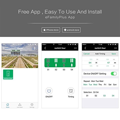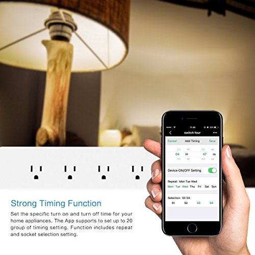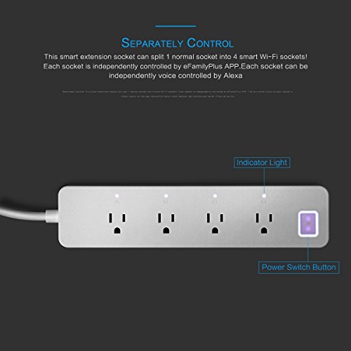WIRELESS REMOTE CONTROL: Control 4 Sockets individually with your smart phone anywhere, NO distance limite. Work with Alexa for voice control, instantly turn on or off devices by voice control with Amazon Alexa.