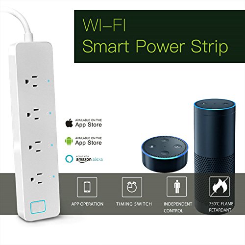 WIFI SMART POWER STRIP SOCKET, SMART OUTLET STRIP SURGE PROTECTOR WITH 4 INDIVIDUALLY CONTROLLED OUTLETS WORKS WITH AMAZON ALEXA ECHO, TIMING FUNCTION, REMOTE CONTROL VIA APP FOR SMART PHONE/TABLETS