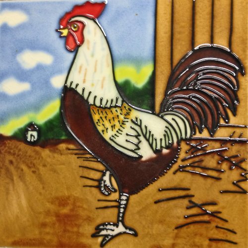 Continental Art Center BD-0019 8 by 8-Inch Black and White Rooster Ceramic Art Tile