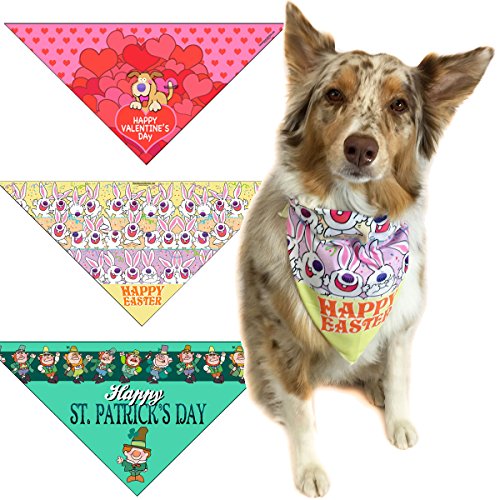 -. Title : Valentines Day, St Patricks Day & Easter Dog Bandana Med to Large Dogs - Set of 3