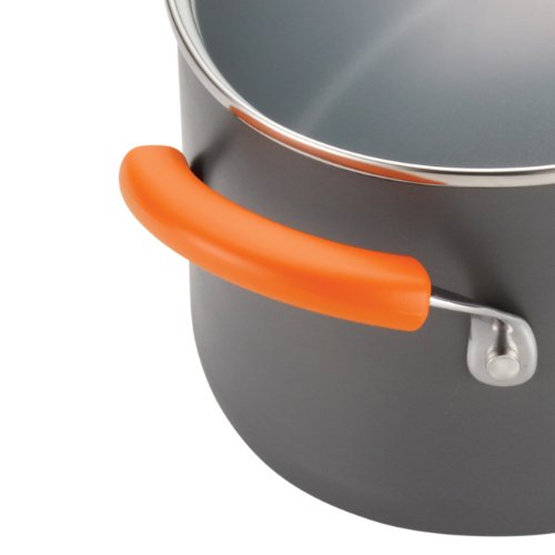 RACHAEL RAY HARD ANODIZED II NONSTICK 3-QUART COVERED OVAL SAUTÉ, GRAY WITH ORANGE HANDLE