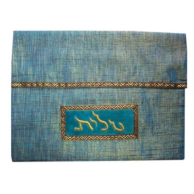 Teal Maylar Colored Tallit Bag Embroidered in Gold