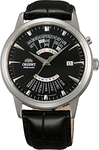 -. Title : Orient #FEU0A004B Men's Leather Black Dial Multi Year Calendar AutomaticWatch