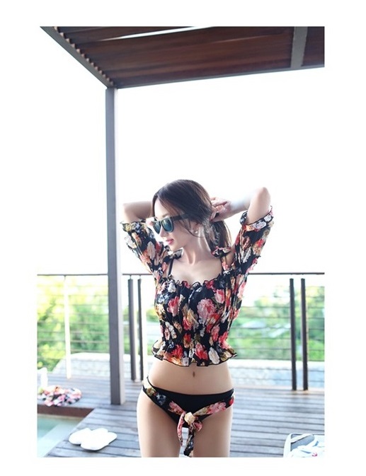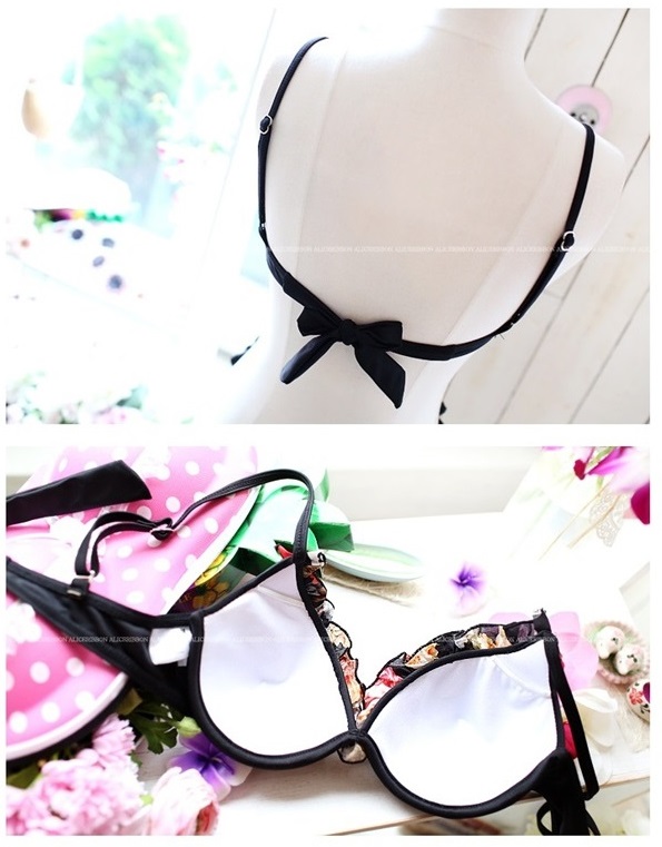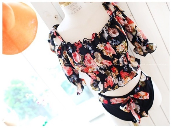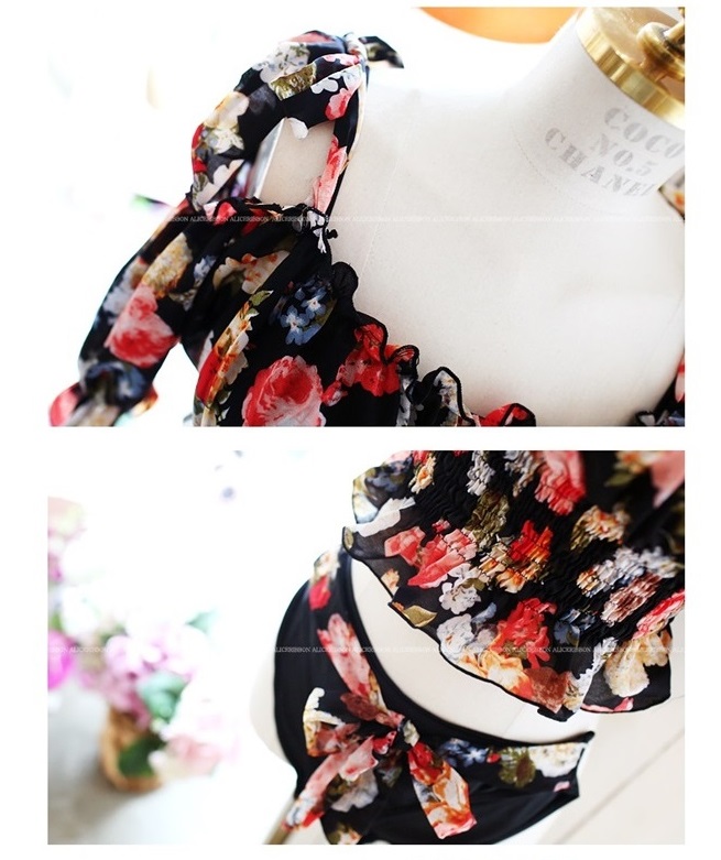 フリル×花柄のガーリーなデザインですが、ブラックなので大人っぽい印象に。