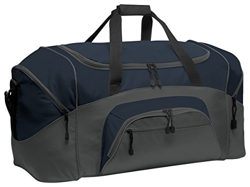 -. Title : Port & Company Color Block Sport Zipper Duffel Bag_Navy/Dark Charcoal_OSFA