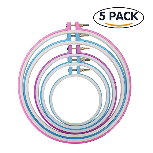 Tenn Well Embroidery Hoops, 5 Pack Plastic Circle Cross Stitch Hoop Ring Set for Needle Craft Handy Sewing (Colorful)