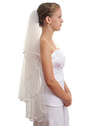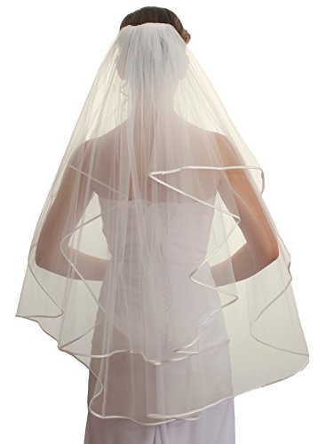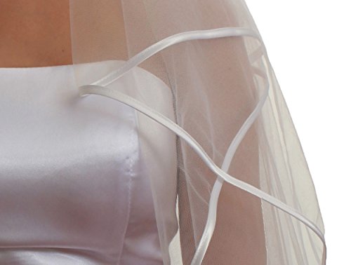 (SparklyCrystal)/Accessories/Scarves/DIRECT FROM USA/SparklyCrystal 2T 2 Tier 1/8" Ribbon Edge Bridal Wedding Veil - Ivory Fingertip Length 36" VC4B3