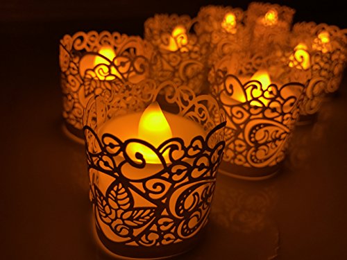 CozyT 100 PACK Tea Light Votive Wraps Paper Candle Holder Laser Cut For Decorative Wedding Party